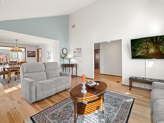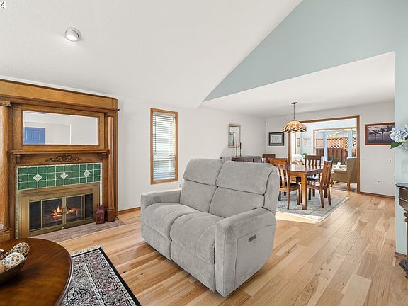 Welcome to 55+ Summerplace, where character-rich living meets modern updates! This stunning one-level home, boasts new hardwood flooring in the living, dining, kitchen and the den adding warmth and elegance. Step inside to discover a welcoming ambiance highlighted by a formal living room with architectural windows, gas fireplace and vaulted ceilings. Experience the zen like qualities of the bonus den / sitting room with abundant natural light. Entertain with ease in the formal dining and spacious kitchen, ideal for hosting gatherings both large and small. The chef's kitchen is a culinary delight, equipped with Corian countertops, center island, and ample cabinet space. The adjacent breakfast area has beautiful French doors that lead to your backyard patio. The spacious upgraded primary suite includes a walk-in shower and closet. The hall bathroom has been beautifully remodeled showcasing gorgeous tile and a brand new vanity. For added convenience, there's an indoor laundry area with a sink and storage. Stay cool during the summer months with central A/C, ensuring year-round comfort. Two car garage with attractive storage cabinets. Additional updates include a new garage door and interior paint, adding to the appeal of this move-in-ready home. Don't miss out on the opportunity to make this exceptional property your own. Call now to schedule an appointment and experience the best of Summerplace living! [Home Energy Score = 2. HES Report at https://rpt.greenbuildingregistry.com/hes/OR10213426]
