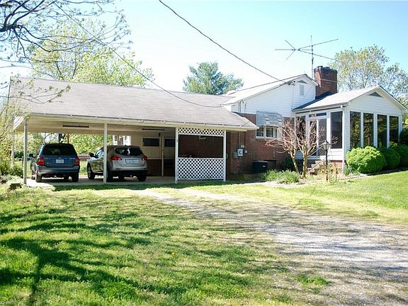 KERNERSVILLE 2Br 1.5Ba Brick Ranch with Sunroom! USDA Financing Eligible! Property includes additional lot behind house. Tons of potential! Sunroom is heated & cooled. Den plus Living room with fireplace. Some hardwood flooring. Kitchen has breakfast bar, opens to dining area. Mudroom with sink and lots of cabinet storage. Unfinished basement has fireplace, sink and cabinetry. 2 car carport, deck with built-in bench and huge storage barn. New roof in 2008. Easy access to major roads.