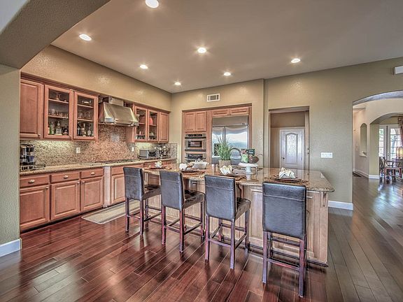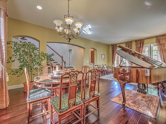 A slice of paradise with panoramic vistas of the valley and hills! Perfectly located near the open hills of the Windemere Dougherty Valley, this grand east-facing estate is perfect for indoor-outdoor living enjoyment as well as entertaining. The picturesque grounds are beautified by a lovely Koi pond with a water feature, charming pergola and Zen-like patio area. You and your guests can take advantage of the scenic views and temperate weather when gathering in the wonderful outdoor living room complete with a built-in barbecue, wine bar, sink and outdoor oven. The stunning, expansive interior (3,826 square feet) with 5 bedrooms, a home office and 4.5 baths is extremely comfortable, light-filled and elegant. An open-concept floorplan provides a seamless flow and sophisticated setting for hosting parties and special occasions. Among the distinctive features gracing the home throughout are high airy 10 foot ceilings, arched open doorways, Brazilian walnut hardwood floors, a fireplace, plantation shutters, upgraded carpeting in the generously-sized bedrooms, and a designer paint palette. The main rooms include a large formal living room/ dining room, and an open kitchen the chef will love adorned with upgraded cabinetry, granite slab counters, a large island, pantry, built-in desk, and stainless steel appliances including a built-in refrigerator. The open, adjacent family room with a gas fireplace, modern built-in cabinetry and media center overlooks the valley and hills and is the perfect place to relax. The main level bedroom with an en-suite bath also enjoys exceptional views in addition to private access to the back patio. The upper level master bedroom suite is highlighted by large windows with stretching views and 2 walk-in-closets for your storage. Complementing the master suite is a private bathroom draped in travertine tile, with double vanities, a jetted soaking tub and walk-in glass shower. There is an additional bedroom suite and 2 more bedrooms sharing a connecting full bath. A bonus room tucked quietly behind glass-paneled doors overlooks the living/dining room and can serve as an ideal home office as well as other uses as desired. The location is outstanding, near award-winning San Ramon Valley schools, parks, plus lovely hiking and bike paths for spending time in nature.