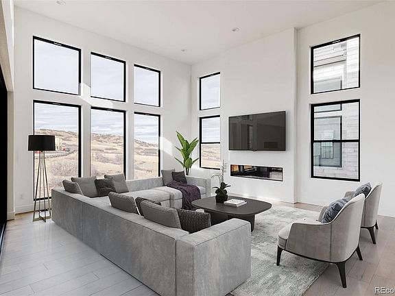 Incredible Infinity Vector in the Canyons at Castle Pines. To your left you will find the brightly lit study encased with European glass walls. Beyond that lays the expansive open main floor living area lined with wide planked engineered hardwoods. This area is perfect for entertaining. The living room guides you into the gourmet chef’s kitchen with striking stacked cabinetry, upgraded appliances including a built in fridge, an oversized island, and finished with pendant lights. Tucked away in the back corner you’ll discover the main floor primary suite lined with walls of windows overlooking the same impressive mountainside views. In the luxurious 5 piece primary bathroom you will find double vanities, a glass encased shower, a large soaking tub and a walk in shower. Step down to the finished - walk out basement to discover a large second living area with a slider that guides you to the backyard - as well as a built in wet bar. In the basement you will also locate an additional bedroom and a full bathroom as well as a large unfinished space for extra storage. This home fell out of contract due to buyer financing. The home is empty and the photos have been virtually staged. The first exterior photo is a similar listing (the second photo is the actual house). The yard is not landscaped.