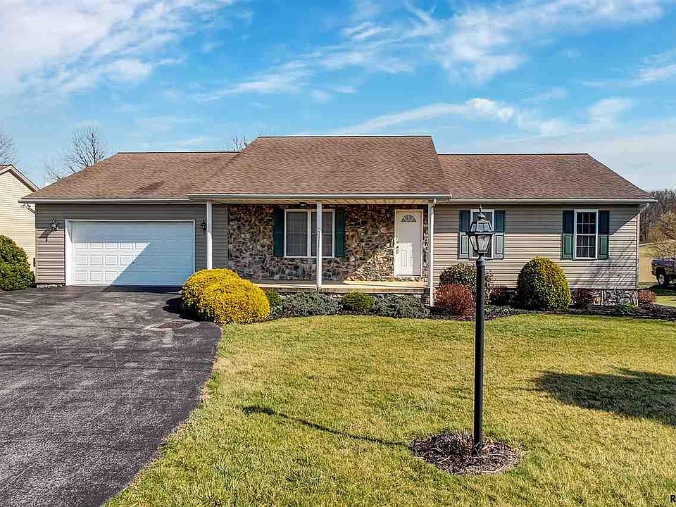 Beautiful, stone and vinyl, custom built rancher. Picturesque setting, level lot, country view both from and back. Extra course of block in basement for taller ceilings.. Covered back deck, over sized attached garage, with capacity for 4 cars.... Close to York, Hanover, and Maryland commuters!!
