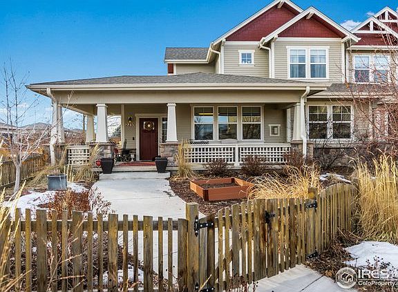 Luxury Townhome in the highly desirable Bucking Horse Subdivision. This Grand Townhome is sunny and spacious. Nice Master on Main with a large walk in shower! High End Stainless Appliances including a gas stove. Slab granite in kitchen and bathrooms. The kitchen island is oversize! Dark wood floors throughout living room, kitchen, and dining. Lots of extra storage in the large closets, and oversize garage. Snuggle up on these cold Colorado nights with the gas fireplace. Spend your summer evenings on the large front porch. Raised garden beds in the front yard surrounded by the infamous picket fence!