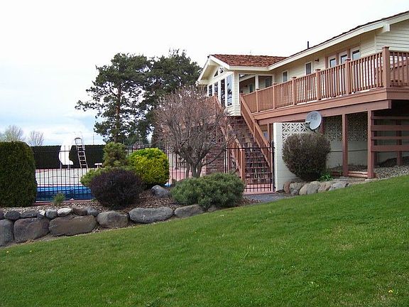 5/8/2013 Beautiful 6.1 acre retreat with amazing views! 5 bedroom home with walk-out basement to the in-ground swimming pool, hot tub on the deck off the master suite, large family room, living room, 2 pellet stoves & formal dining room. Living room offers vaulted ceilings & large view windows to catch the amazing sunsets & Saddle Mountain. Kitchen boasts custom cherry cabinets, skylight, all appliance package & tiled flooring. Large attached 2-car garage plus detached garage/shop of 936 square feet, great set up for equestrian.