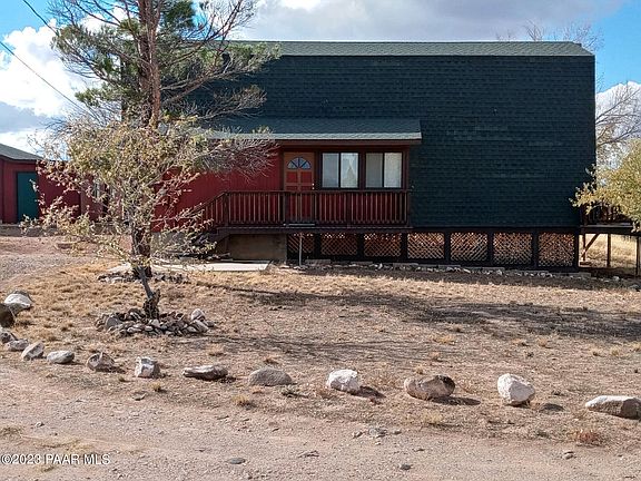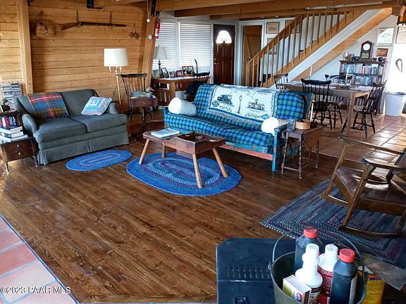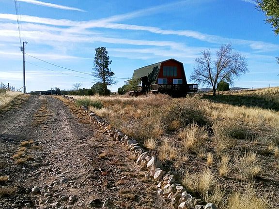 Looking for a rural get-a-way, lots of privacy, adjacent to state Land, Panoramic views of Valley and Mountains? This is it! Cozy Gambrel/A-Frame home on 2 AC. No HOA. It has two floors, an open floor plan, live on first: BD, BA, living room/dining/kitchen combo, Laundry. Views from large double door/window opening on to the large deck. On 2nd floor, an open space/ loft bedroom with views from large doors/windows at each end. Very good well. Large detached 2-car garage with workshop. Fenced yard. Heated with a pellet stove, but a wood stove can be installed. Horses allowed.