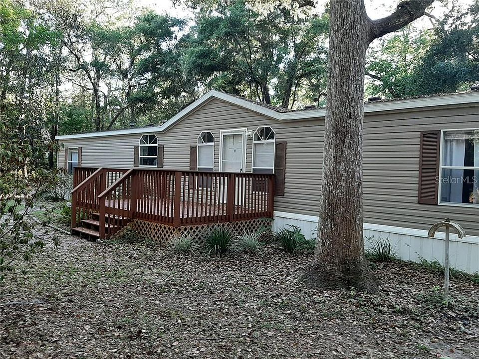 Just off the beaten path, yet only ten minutes from downtown you'll find this peaceful wooded oasis. The 3 bedroom, 2 bath double wide is in great shape and boasts nearly 2000sf living area including large open living area situated on nearly an acre. Kitchen is roomy with tons of cabinet and pantry space, an island centers the kitchen area for gathering. In the living room is a wood burning fireplace, dining room and large foyer complete the spacious family area. The master bedroom has huge walk in closet and a private bath with double sinks, garden tub and separate shower. The flooring is all new one newer. Roof replaced in 2014 w/lifetime warranty shingles. Out front is a deck with a private wooded view of the vacant lot to the East. Through the indoor laundry And out the back door the huge back deck Has plenty of room for grilling and relaxing. In view of the back deck Is a nice sized shed with a single bay door to workshop and plenty of space for storage and tinkering. If you're looking for a place between Inverness and Brooksville - this is IT! But, it won't last long at this great price- so hurry!
