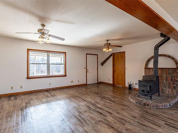 Quiet country living on 5 acres is available in the community of Pink, west of Tecumseh. Built in 1993, this three bedroom, two full bath and one half bath in the laundry room has all the extras available in 1,654 square feet. This house was built on robost framing with 2x6 walls with loads of insulation and 18 inch rafters. Catch a sunrise or sunset from the spacious covered porch that faces the south overlooking a koi pound. Located off the kitchen dining behind a door is a laundry room with plenty of space for storage that leads into a sunny Florida room that is currently housing a hot tub. The living room features a huge wood burning stove for those cold nights and is lined with windows to allow maxium sunlight. The master is located off the living room and has its own master bathroom and walk in closet. The two secondary rooms are on the other side sharing the second full bathroom. This unrestricted 5 acres offers 2 metal barns two loafing sheds and one tool shed. One barn is big enough to park cars and other machinery or toys in and both have electric ran to them. A storm shelter that has been built into the ground is located behind the pink door across from the house. It is encased in concrete. Roof was replaced with a metal roof in 2010, there is 1 layer of shingles under it. A/C replaced in 2018. Water well pump was replaced in 2017.