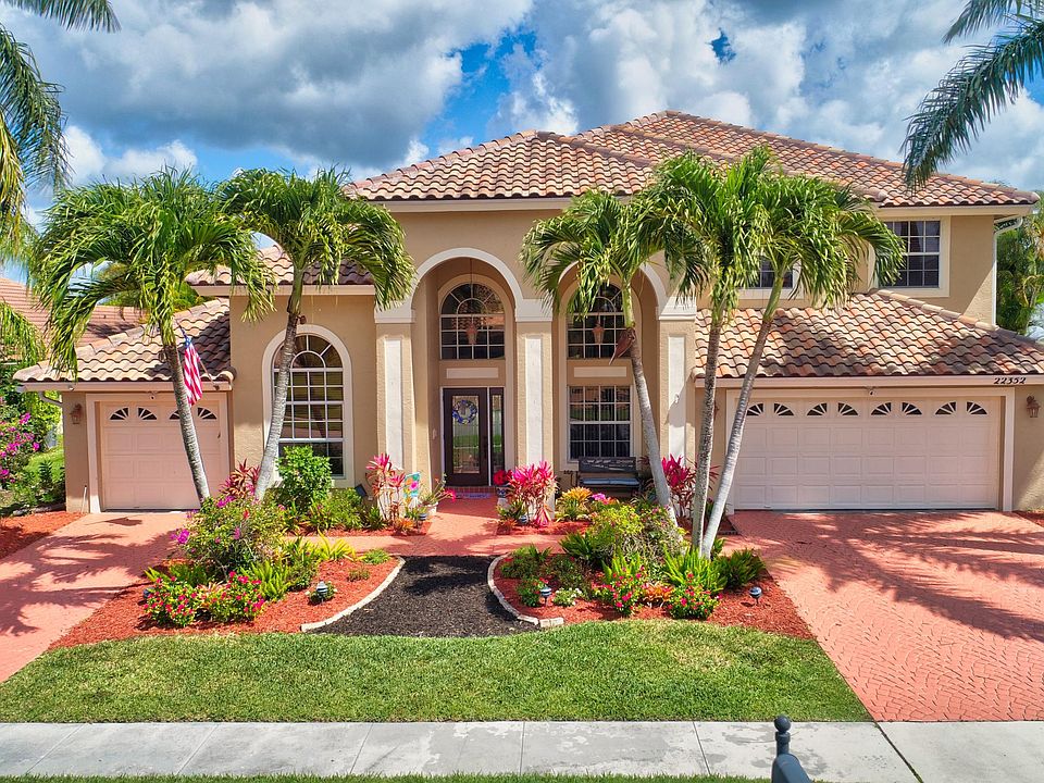 This home is a 6 bedrooms, 4 bathroom showpiece. 3 car garage. Full sized heated pool w/ Travertine deck that overlooks premium lake view. Kitchen with upgrades, Granite and Tumbled marble. High end wood floors in master bedroom. Upgraded wood and granite bathroom and tiled seamless shower. Newer flooring on stairs. High vaulted ceilings. 2019 $45K roof. Two A/C units 2013 and 2014. This is a real beauty. A true 6 bedroom home. Low HOA. 'Walk or bike to 3 'A' Rated Schools. 1 mile away from south county park with outside Amphitheater, dog park,27 hole golf course, nature center, water park, tennis. Great area. Must see!!
