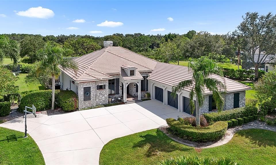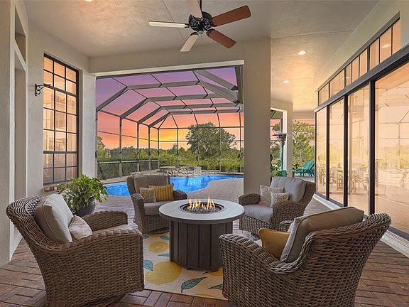 Prepare to be captivated by this custom Arthur Rutenberg home, located in the prestigious Preserve at Panther Ridge. Situated on a private 1.67-acre landscaped, lakefront lot this stunning 3,300+ sqft residence has been COMPLETELY RENOVATED (2023). The versatile floor plan allows for multiple living arrangements and can easily function as five bedrooms plus an office, or four bedrooms with a separate office and bonus room. The bonus room features a vaulted ceiling, window seat, and sliding glass doors that open directly to the pool area—ideal for a guest suite, studio, home gym, or game room. Throughout the home, you’ll find newly refinished hardwood flooring, custom soft-close cabinetry with dovetail drawers, and striking quartz countertops that elevate every space. In the heart of the home, the chef’s kitchen is both stunning and functional, complete with a large center island, farmhouse sink, wine refrigerator, custom range hood, open shelving, and expansive breakfast bar perfect for entertaining. Designer light fixtures, plantation shutters, and elegant ceiling beam accents complement the home’s detailed craftsmanship, while crown molding and shiplap trim provide a warm, custom finish. The living room, kitchen nook, and family room are all connected by architectural details and a two-sided gas fireplace, enhancing both ambiance and flow. Pocketing sliding glass doors in the family room reveal the expansive lanai and peaceful lake views, creating an effortless transition for indoor—outdoor living. The heated pool and spa—complete with an in-pool cleaning system, new pool pump (2021), automated pool control system (2022), and heat pump (2022)—provide a luxurious retreat year-round. The oversized, pavered lanai offers multiple covered seating areas, a generous sun deck space, and includes a mounted TV for outdoor enjoyment. Step into the primary suite through double-glass doors and discover a private haven featuring architectural ceiling beams, warm wood floors, a spacious sitting area with views of the pool, private access to the lanai, and dual walk-in closets. The completely renovated primary bathroom features custom cabinetry, quartz countertops, double sinks, stylish mirrors and lighting, and a large walk-in shower with refined tile finishes. The guest bathrooms have also been refreshed with new vanities, lighting, and glass shower enclosures. Even the laundry room received a full upgrade with new cabinets, countertops, a utility sink, and open shelving for added storage and convenience. Additional updates to the home include full interior and exterior painting (2023), a new deep well and water heater (2022), and a new water softener. The garage features three individual bays and includes a 240-volt electric vehicle outlet (2023). In addition the electrical sub-panel was upgraded (2025), and one of the two HVAC units was replaced for added efficiency and peace of mind (2025). The home also includes several newer windows in select rooms (2023). Panther Ridge offers 15 miles of walking and equestrian trails, a community park with a pavilion, tennis courts, basketball, and a playground. Residents enjoy the serenity of a country-like setting with the convenience of being only a short drive to Lakewood Ranch, top-rated schools, and the area's best shopping, dining, hospitals. With a low HOA and no CDD fees, this extraordinary property offers a rare opportunity to own a luxurious, move-in-ready estate that feels brand new.