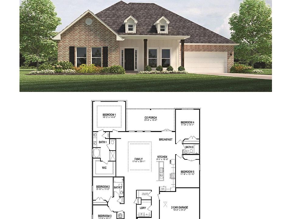Find all the space you need in our Mckenzie floorplan in Belmont, a new home community in Denham Springs, Louisiana. This home is on a large homesite with a beautifully landscaped, fully sodded yard. With 3082 sq. ft., you’ll have the perfect amount of space in this 5-bedroom, 3-bath floorplan. This home is on a large homesite with a beautifully landscaped, fully sodded yard. With 3082 sq. ft., you’ll have the perfect amount of space in this 5-bedroom, 3-bath floorplan. Upon entering the foyer, you will find convenient access to the study and the formal dining area. As you proceed through the entryway, you will step into the expansive open-concept living space. The great room seamlessly integrates with the kitchen and breakfast nook. Every D.R. Horton home is furnished with smart home technology, ensuring constant connectivity regardless of your location. The kitchen provides ample space for aspiring chefs to showcase their culinary skills, featuring shaker-style cabinets, quartz countertops, stainless-steel appliances, and a walk-in pantry for storage. A walk-in pantry offers plenty of storage, while the centrally located laundry room ensures convenience for all residents.