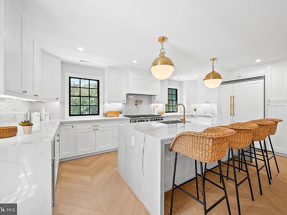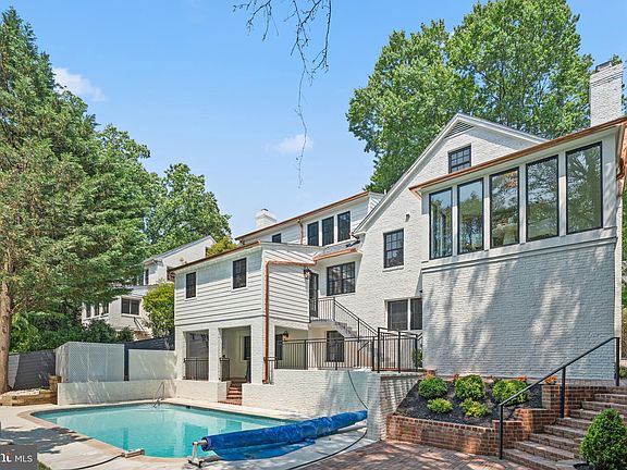 Traditional charm meets contemporary design from Award Winning Builder Dilan Homes' latest masterpiece, located at 2236 46th Street NW. Tucked away on one of Berkley’s most picturesque and tranquil streets, this brick Tudor-inspired home has been impeccably updated and thoughtfully reimagined. Its understated curb appeal begins with an original bay window and striking copper gutters against painted white brick that warmly welcomes guests. A deep-water heated gunite pool, framed by aged brick hardscaping, and lush landscaping, creates the feeling of a private estate where timeless architecture seamlessly blends with modern luxury. Inside, the home offers a beautifully considered layout across three fully finished levels, featuring wide-plank herringbone patterned European White Oak floors and whimsical paint hues complimented by premium finishes with gold and brass tones throughout. The main level consists of a grand formal living room with a wood-burning fireplace, an elegant dining area that is open to the gourmet eat-in kitchen with a quartzite island and backsplash as well as a convenient powder room. A short staircase leads to double doors that open to the private master suite—a true retreat featuring dual walk-in closets with built-in LED lights, a spacious spa-like bathroom, a second laundry area, and a sunroom that overlooks the pool and secluded backyard. Upstairs, you'll find three generously sized bedroom suites, each with walk-in closets and two luxurious en-suite bathrooms. The expansive lower level includes a private Au Pair suite, a laundry/mudroom, an office or optional bedroom, a recreation room with another wood-burning fireplace, a fitness or pool changing area opening to the rear yard, and ample natural light throughout. A walkout portico leads directly to the manicured backyard, featuring the deep-water pool, extensive hardscaped patios, brick retaining walls, planted gardens, and a bonus lawn area. 2236 46th Street NW perfectly embodies understated modern elegance behind a beautifully restored, architecturally rich façade—all within walking distance of parks and local amenities, including W Street Park, Glover Archbold Park, Palisades Rec Center, BlackSalt, and a variety of shops and restaurants.