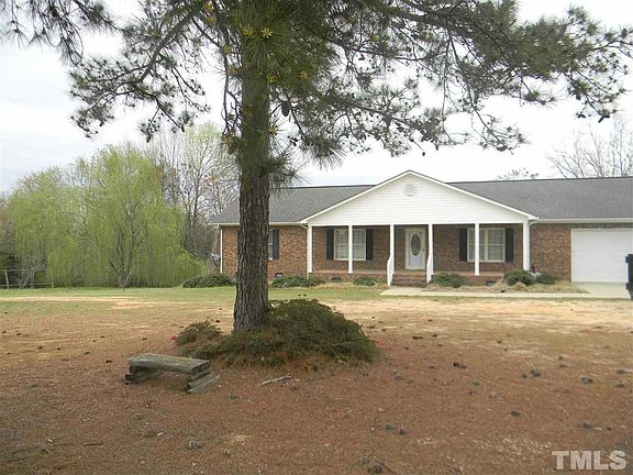 Hard to find brick ranch on 1.74ac! 3br, 2ba, lg kitchen w/eat at bar, all appliances remain, lots of cabinets, lg breakfast area, family room with corner fire place, master has lots of closet space, large master bath with large shower w/ seat, utility room w lots of space, lot offers pond, several detached storage buildings, access to basement from inside home and outside home, walk-in crawl space for storage, detached metal shelter for extra parking, wiring upgrades. Min to I-40 and I-95. Great schools.