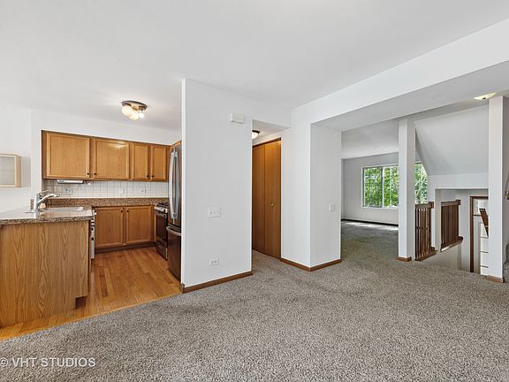 MULTIPLE OFFERS received! Highest & Best offer due by 6:00 Friday 6/9. Fabulous location with this 3 level townhome located in Dawson Mill just off of Randall Rd corridor! This 2 bedroom / 2.5 bathroom home offers 1,710 sq ft of living space, hardwood floors in kitchen, a freshly painted interior, private covered balcony and a 2 car attached garage. Spacious main level with a living room, dining room, kitchen that is open to the eating area & access to the covered balcony, and a half bathroom. Large master bedroom with a vaulted ceiling, double closet and full bathroom. Brand new stainless steel appliances in kitchen! Generously sized secondary bedroom with a full bathroom. Extra living space in the lower level with storage under the stairs. Professionally cleaned carpets. Conveniently situated within close proximity to grocery stores, shopping, restaurants and entertainment. Short drive to I-90.