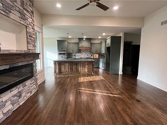 Another remarkable Ranch plan "The Kirby' built by NTJ Builders. Large, treed walk out lot that backs to the city trail. Walk into the entry and you will love the open concept, large, covered deck and patio for great entertaining. The great room offers a beautiful stone fireplace, and the kitchen has a large island, painted cabinets, walk in pantry, granite counter tops and custom cabinets. Walk into the owner's suite and you will fall in Love! Finish the basement later if you like and step out to a large patio and walk right to the city's 4-mile walking trail right from your back door.