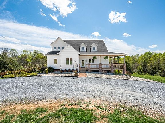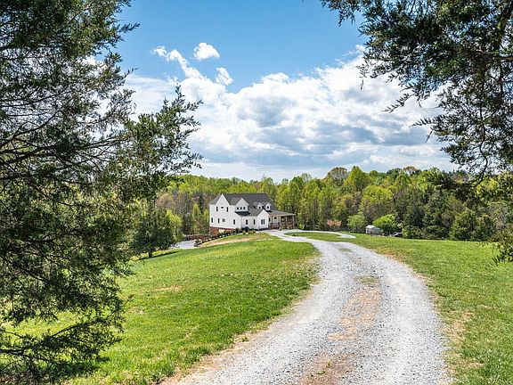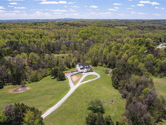 Modern Farmhouse Living on 8.78 acres in Goode minutes from Forest schools & shopping! Enjoy panoramic skyline & sunset views from the 80 ft wrap around porch! Great room has wood burning fireplace w/ log lighter, dining & kitchen all open w/ 26 foot ceilings. Gourmet kitchen features island w/ granite waterfall edge, pantry, espresso machine, wine cooler, pot filler, gas range & all Bosch appliances. Main level master has lavish master bath w/ soaking tub, soapstone counters & gorgeous all tiled shower. Main level features an office or den. Second story boasts a beautifully designed full bathroom & two more bedrooms & one w/ a private deck. Terrace level boasts separate apartment w/ 4th bedroom, kitchen, dining & family room. Oversized 2 car garage with lots of storage. Visual comfort lighting, upscale vanities & upgraded ceramic tile throughout. Homestead living w/ a creek, spring, generator, chicken coop, fruit trees & vines & garden space. Make this peaceful retreat your next home!