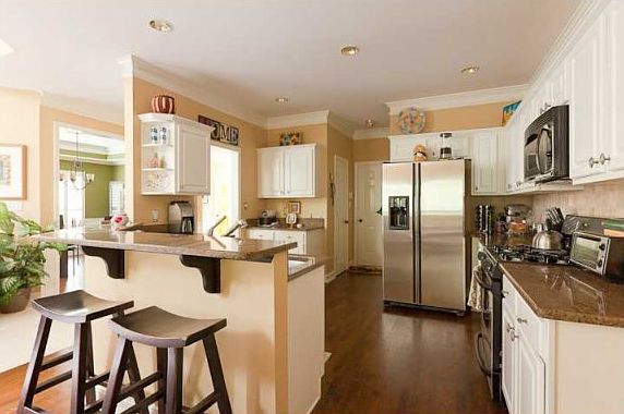 • Kitchen Features: Breakfast Bar, Eat-in Kitchen, View to Family Room, Stone Counters, Pantry Walk-In, Breakfast Room, Cabinets White