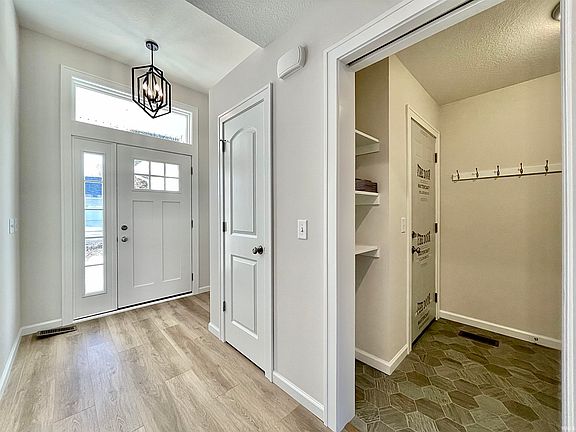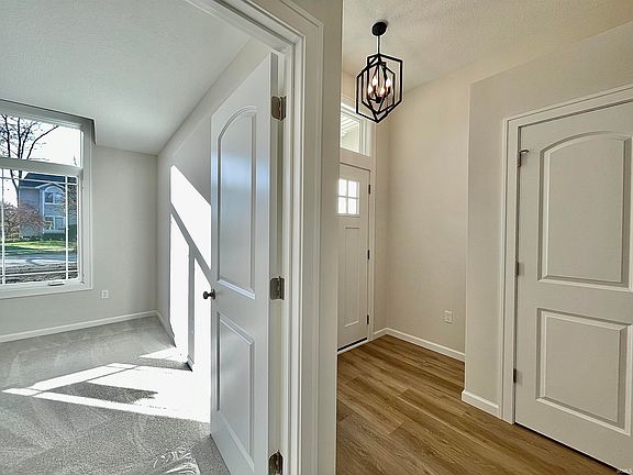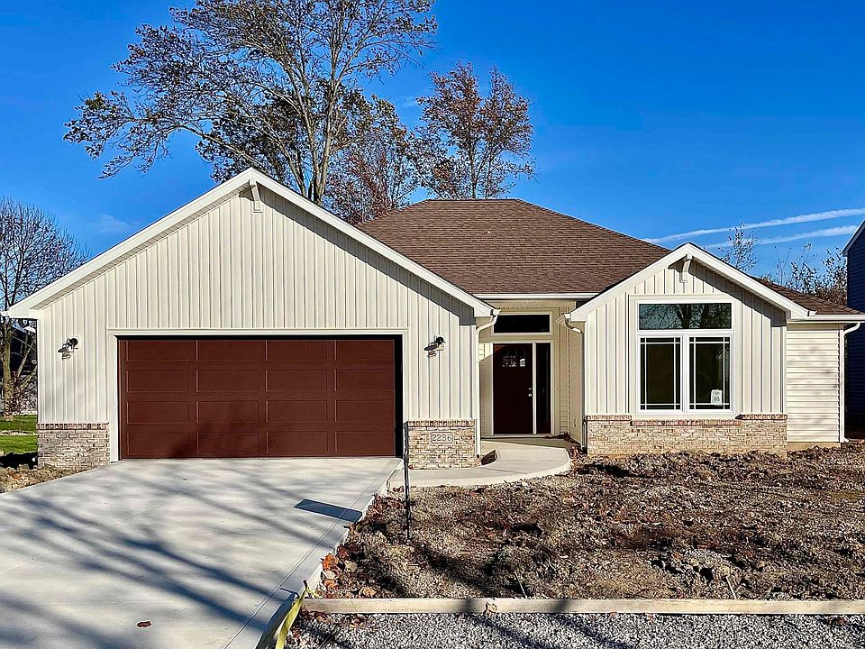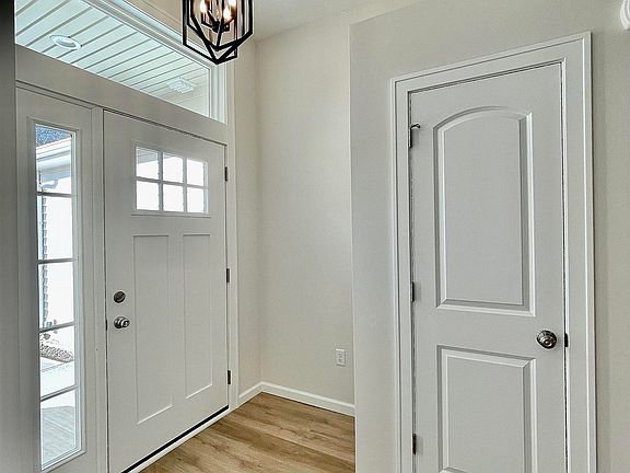 New construction ranch offered by Fall Creek Homes on cozy wooded lot in Wellington Reserve neighborhood, just minutes from Jefferson Point amenities! This stylish three bedroom, two full bath home is a must see! The exterior features maintenance free brick wainscot, vinyl Board & Batten, decorative gable brackets, and extra wide 2 car garage. Enjoy the spacious open concept with great room cathedral ceilings, wall of windows and a cozy corner fireplace. The open kitchen and dining area features a large island with seating accommodation, corner pantry and a 6-foot sliding door to the back patio that overlooks the secluded and peaceful wooded backyard. The primary suite features a custom walk-in closet, ceramic tile shower, linen closet and dual bowl vanity. New range, dishwasher and microwave included! Don't miss out on this beautiful new home - schedule your personal tour today!