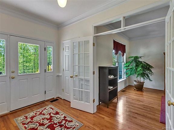 Welcome to this Beautiful Sunlight-Filled Home. Lovely Craftsman styling with Hardiplank Siding. Inside you'll find Transoms over Doorways Plus LOTS of Trim and Moldings. The Living Room has Glass French Doors at both entrances that makes it PERFECT for a HOME OFFICE. The Kitchen features a Sunny Eat-in Area and Large Breakfast Bar. New Carpet adds for an extra Cozy Spacious Family Room with 4 Windows and Rear Stairs. Upstairs you'll find a Convenient Utility Room with Washer and Dryer, 4 Nice-Sized Bedrooms including a Large Master with it's own Gas Fireplace and Spa Bath. Venture up from the Second Floor hallway to the 5th Bedroom/Bonus Room and Full Bath on the Third Floor complete with a Closet,several Built-In Shelves and it's own SEPARATE Heat Pump for Heat and A/C. Outside you'll find a great Deck, Patio and Fenced rear yard or enjoy the Seating on the Front Porch. Convenient for Commuter access. Ideally located in Amenity-Filled Brandermill and the Top Schools in the County this is a MUST SEE home that will sell quickly.