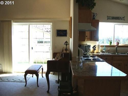 Even on a rainy,coastal winter day the South&East exposure makes this delightful North Bend home light & bright.situated to take advantage of the views to the coastal mountains. Vaulted ceiling & propane stove in great rm w/formal dining off kitchen lrg enough for family dinners.Private fenced yard, covered patio rm for play equip. & garden