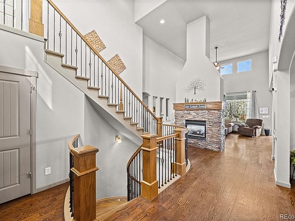 Nestled in a quiet cul-de-sac, this stunning two-story home offers luxury and functionality with main-level living and breathtaking mountain views from the upper-level loft and covered balcony. Inside, you'll be greeted by rich hardwood floors and a dramatic two-sided fireplace that anchors the spacious main floor.