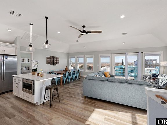 Flawless semi-oceanfront home with breathtaking views, perched on a commanding lot overlooking wild & wonderful Carova. A steady earner in an established rental program, 2025 projections to $110,000. This stunning 5-bedroom, 4.5-bath home, built in 2021, still feels brand new thanks to the owners’ meticulous care and continuous reinvestment. The top level boasts an expansive, airy open-plan design featuring a stunning kitchen with icy white quartz countertops and cool key lime tile, a spacious dining area with large table for festive gatherings, and a sprawling, comfy living room - all offering unobstructed ocean views from every seat. Step out onto the “bar deck,” where you can enjoy sweeping vistas while sipping a Corona with lime and watching the world go by. The primary suite is also on the top level, complete with its own private ocean-view deck - perfect for watching dolphins leap as you enjoy your morning coffee. Both the primary and secondary bedrooms feature en suite baths and private view decks. The home includes a playful bunk room on the first floor and a super fun, themed “shark room,” located on the entertainment level, which is equipped with shuffleboard, billiards and games galore. Outside, a sparkling pool and steaming hot tub await, ready to enhance your days on the beach and evenings under the stars. For your overland vehicle, the home offers a rare luxury: an enclosed, temperature-controlled garage. Come experience life where wild stallions roam free in this one-of-a-kind custom home in Carova. The seller is open to offering owner financing at below-market rates to help make this dream a reality. Inquire today!