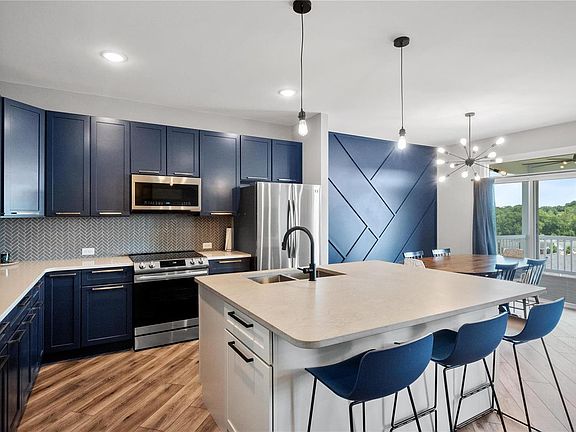 - Kitchen Island, Custom Cabinetry, Eat-in Kitchen, Solid Surface Countertop(s), High Speed Internet, Entrance Foyer, High Ceilings, Open Floorplan, Walk-In Closet(s), Kitchen/Dining Room Combo, Double Vanity, Lever Faucets, Shower