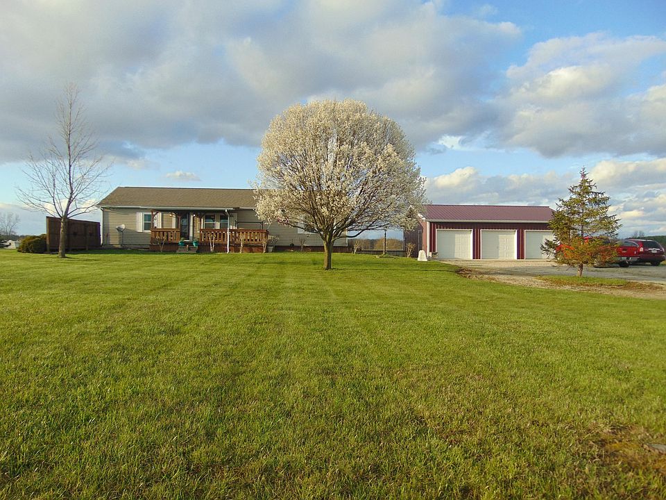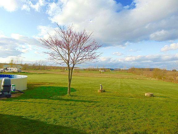 Lovely and clean ranch home sitting on just over 6 acres. Spacious kitchen with new glass doors that lead to deck and above ground pool. First floor laundry room, master suite with large bathroom, enjoy the summer nights on the front porch, or enjoy the heated garage for a change in scenery. You do not want to miss this one!