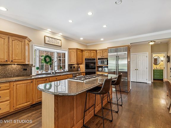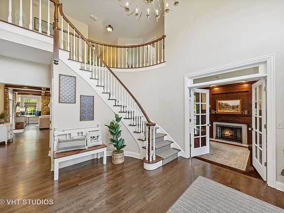 Prepare to fall in LOVE! This stunning HOME offers an elegant style and desirable Open Floor Plan, perfect for entertaining and casual everyday living. Gorgeous Hardwood flooring throughout the spacious main level, with oversized windows and amazing views from every Sun-Drenched room. Your formal living room (or office) features a gracious fireplace, rich wood paneling, and French doors. Dining Room with trendy wainscoting can comfortably host a Crowd. Chef's Dream kitchen includes double ovens, a Thermador cooktop, granite counters, and a new Sub-Zero refrigerator. Enjoy the handy planning desk, massive walk-in pantry, and informal dining at the enormous center island. Your breakfast area is flooded with natural light with floor-to-ceiling windows and direct access to the great outdoors. Relax in your family room with remarkable Beamed Ceiling in front of the custom stone fireplace or at one of the comfy window seats. Off the family room, you'll find a bright and fantastic flex room with closets and built-ins....perfect for an office, den, hobby, or 5th bedroom. Whatever your lifestyle prefers! Your laundry and drop zone are conveniently located just off the kitchen. Up the stylish curved staircase, you'll find the Extraordinary primary retreat. Expansive with a cozy feel, unwind in the sitting area with intimate fireplace or out on the balcony overlooking your spacious yard. Immerse yourself in Pure Luxury in the incredible private ensuite featuring a glorious soaking tub and Steam Shower. The updates are next level, and you deserve it! Three more very Generous bedrooms and two additional full baths complete this amazing space. The Finished Basement is impressive with a kitchenette, an enormous recreation area, and yet another custom stone fireplace. So bright and open, it doesn't feel like a lower level at all. A second powder room and storage galore complete this bonus area. A private outdoor oasis awaits you, offering a two-tier deck, custom fire pit, and professionally landscaped yard. The sellers are sorry to leave this exceptional Home! Quiet, small-town living...just a stone's throw from shopping, dining, nature, entertainment, healthcare, and more. Situated on nearly 1.5 acres in the desirable Pheasant Ridge community of Lake Barrington. See it Today!