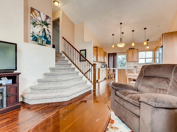 Located in a quaint neighborhood with close access to E-470, shopping and parks, this amazing 3 bed, 2 bath tri-level home welcomes you with stunning hardwood floors, vaulted ceilings and an open layout. This home also has been equipped with solar panels, which reduce the cost of your electricity usage. The living room opens up to your beautifully updated kitchen. With all new pinewood cabinets and lighting this home's kitchen offers ample storage and a large island with storage. The vaulted ceilings carry through to your master bedroom which also offers a spacious layout and generous closet. An additional bedroom and a full bathroom are located upstairs. In the lower level is a 3rd bedroom, full bathroom and spacious family room. Outside, is a large fenced-in backyard with patio, perfect for enjoying time with family and friends. Additionally, this home has a 2-car garage.