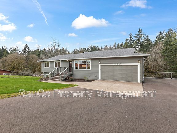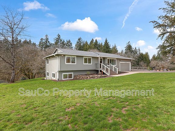 Welcome Home! Nestled in the hills of Sherwood, this beautifully renovated home offers both peace and privacy while maintaining excellent access to downtown Sherwood, Newberg, and Hillsboro. Featuring five bedrooms and three full bathrooms, this stunning home is designed for both comfort and functionality. The main level boasts a bright and airy living room with vaulted ceilings and built-in shelving, seamlessly flowing into the open-concept kitchen. The kitchen is a chef's dream, complete with a large island with slab quartz countertops and an eating bar, stainless steel appliances, under-cabinet lighting, a farmhouse sink overlooking the backyard, and soft-close cabinetry. Step outside to a spacious deck, perfect for entertaining, while enjoying the serene views of the expansive private backyard and surrounding forest. The primary suite offers a walk-in closet, a luxurious ensuite bathroom with a step-in shower and double vanities, and a private balcony overlooking the yard. The main level also includes two additional bedrooms, a guest bathroom, and a convenient laundry area. The daylight basement provides additional living space, featuring a large bonus room with built-ins and high ceilings, a kitchenette equipped with a fridge, microwave, sink, and dishwasher, and sliding doors leading to a spacious private patio. This level also includes two more bedrooms, a full bathroom with a dual vanity, and additional washer/dryer hookups. Additional highlights of this home include an efficient heat pump with dual-zone climate control, an EV charging station in the garage, an expansive parking area, exterior security lighting, and the convenience of included landscaping maintenance. This exceptional home offers the perfect blend of modern amenities, privacy, and convenience. Schedule your tour today! *mechanical room is not for tenant use* No Smoking or Vaping Allowed Pet Policy: Dogs allowed, additional restrictions apply. Limit 2 Lease terms: 12 months, Residents responsible for all utilities. Renters insurance required for qualifying residents. HOA Rules and Regulations: No Disclaimer: Photos may be from a previous listing. All information, regardless of the sources, is to be deemed reliable but should be independently verified and is subject to change. For applications and rental criteria, and dog breed restrictions, please visit our website!