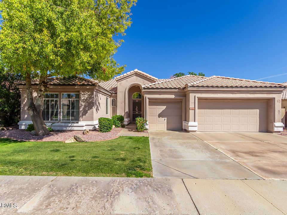 Welcome home! This splendid 4-bedroom, 2-bath home is complete with a 3-car garage and an impeccably maintained front yard. The spacious great room is ideal for cozy evenings with loved ones. The spotless kitchen features granite counters, ample white cabinetry, recessed lighting, stainless steel appliances, a walk-in pantry, and a central island. The sizeable main bedroom offers backyard access and an ensuite bathroom with dual sinks, a designer tiled shower, and a walk-in closet. Outdoors, the backyard boasts a covered patio, a well-kept lawn, and a refreshing pool. Full roof replacement and new A/C in 2022. Pool put in in 2017. Make this gem yours today!