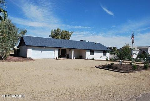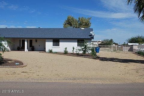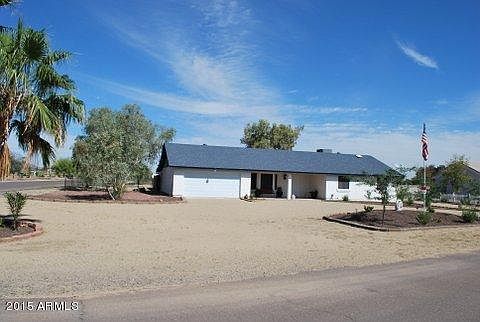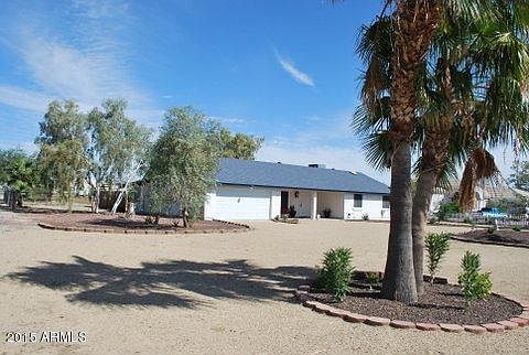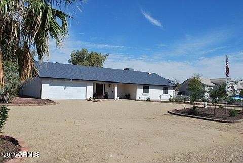 This ranch style home in Buckeye sits on over an acre lot and features a gazebo, fire pit, and spacious backyard full of possibilities. Two large storage units in backyard have electricity, great for a workshop or storing toys. Newly updated, this home has 18 inch tile, new carpet throughout, ceiling fans, and blinds. Corner lot, and circle drive in the front, large 2 car garage with bonus playroom in the back. Lots of potential to make this home, with NO HOA fees, your own! Buyer to verify square footage and schools. Lock box is on hose bib!