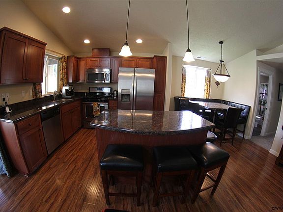 Accepted Offer with Contingencies. Gathering room home/w vaulted ceilings, gas fireplace, kitchen w/island, granite & custom cabinets. Stainless appliances, master with lg. closet & private bath on opposite end of house from other bedrooms (2). 3 bedroom 2 bath home. Beautiful stone patio w/ cover. Large yard with sprinklers, alarm. Great south location, close to downtown and Minto Brown Park. Vacant 3/16/18. Please show.