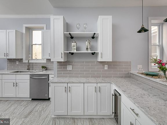 NEW LOW PRICE. ~Beautiful tall windows floor to ceiling filled with natural light every turn you make. Beautifully designed main living space for entertaining with 10+ ft. ceilings. Features gleaming hardwood floors on main and Master levels, gorgeous exposed brick staircase leading to the 2 upper levels, crown molding, skylights, tray ceilings; kitchen equipped with stainless steel appliances, wine fridge, gas stove, upgraded counters, breakfast bar with pendant lighting, backsplash, soft close cabinetry; Master Bedroom with beautiful natural light windows, high cathedral tray ceilings, an extensive walk-in closet, double spacious vanities, a spa like shower, and a separate soaking tub. 4 bedrooms each having its own full bath (you could consider all of the bedrooms Master Suites) and several with walk-in closets, could also be perfect for private office. Basement is a blank canvas waiting for you to make your own, private rear entrance, perfect for a rental or to make your private office, fully finished, wide open, 5th bathroom rough-in. Exterior Features: New front custom wood windows, fenced rear, 2-car parking pad, sidewalks, street lights. New dual HVAC, duct work, electric, plumbing, 2 new sump pumps.