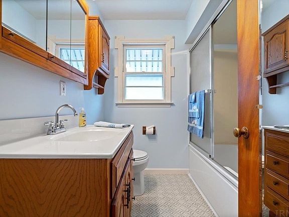 Meticulously maintained two bedroom one bath with beautiful all original hardwood flooring! Roof is only one year old per seller. Full finished basement would be great for an additional living room or children’s play area! Kitchen is spacious with beautiful cabinets and includes appliances in home. Freshly painted. Charming quiet neighborhood convenient to shopping and dining. One car detached garage, 10x 12 storage barn and cute back yard with a deck! Perfect starter home for a young family! Hurry! This won’t last long!