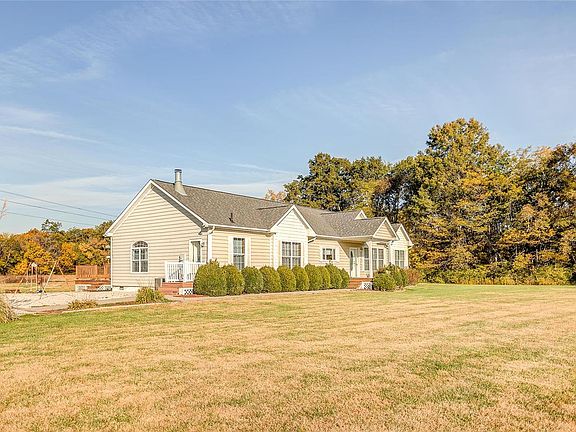 Looking for a home in the Country? This could be the home for you!! This 3BR/2BA home is situated on 6.14 acres wooded & open w/a stocked pond & a 30x50 outbuilding that has a concrete floor & electric. Kitchen has ample amount of cabinets w/crown molding, some have glass fronts, tiled back splash, center island, pantry w/pull out shelving, recessed lighting, stove, dishwasher & microwave. Huge family room has a wood-burning fireplace plus a large living room which makes it perfect for entertaining guests. Main BR has 2 closets w/bath featuring double vanity, garden tub & separate shower. Large outbuilding provides plenty of room for parking and a workshop area. Roof was replaced August 2022. Seller will provide the buyer with a $5000.00 credit at closing for deck repair/replacement. (DO NOT WALK ON DECK) Don't miss out on this country home!! Property has passed occupancy inspection.
