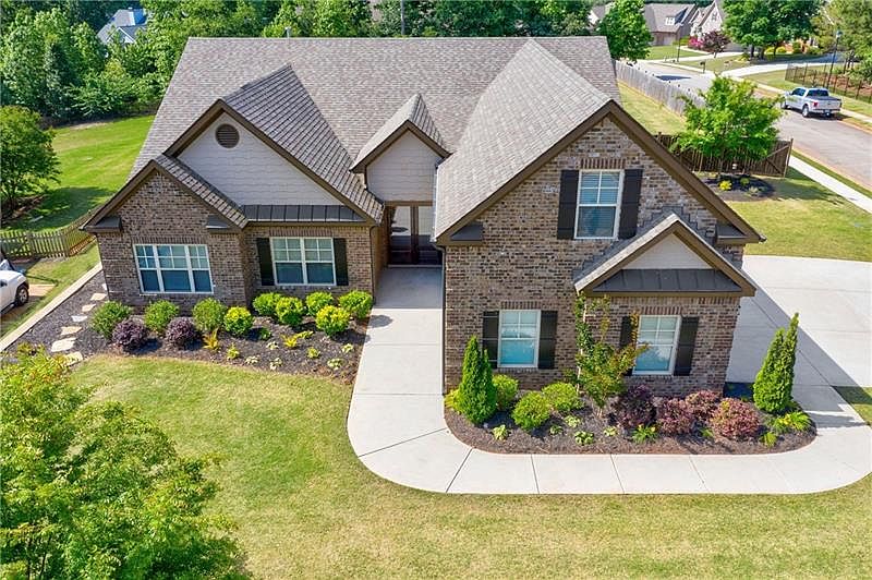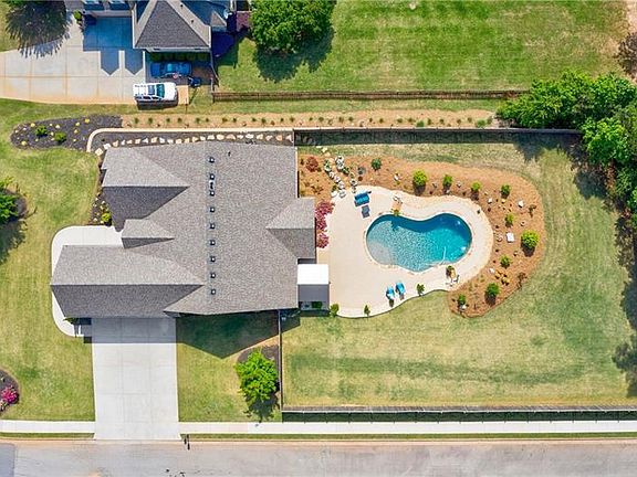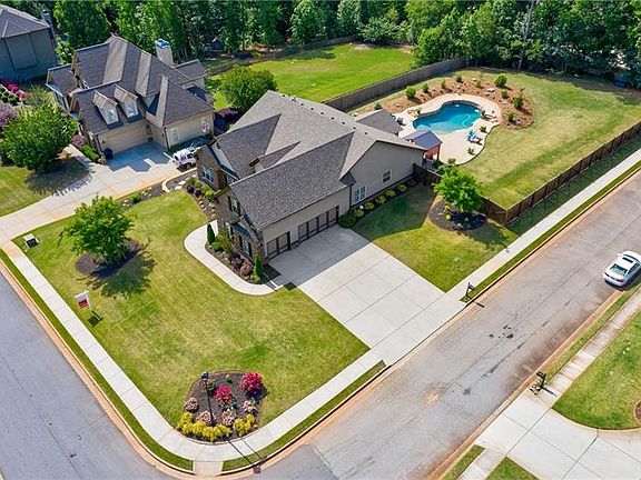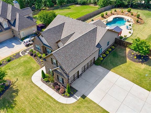 Welcome home to this 2015 Stone Ridge Manor estate with backyard oasis.Expansive corner lot boasts professional landscaping,salt water pool,tech integrated cabana,green space & fenced private backyard.Interior features hardwoods,curved archways,coffered ceilings,double sided fireplace,light filled sunroom,eat-in kitchen w/ solid stone counters,master-on-main,spa-like master bath w/ glass door shower,separate soaking tub & double vanity.4th bedroom flex space perfect for office,playroom,gym,storage,closet studded for full bathroom upgrade.The ultimate move-in ready home!