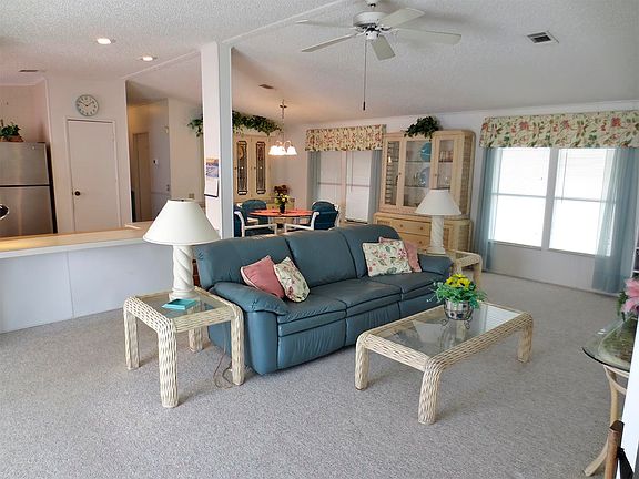 This 2 bedroom 2 bath beauty is located on a nice quite street and backs up to a large field, front and side lanai, spacious living room, dining area, Kitchen includes a breakfast bar, pantry, plenty of cabinets for storage, master bedroom is large enough for a king size bed, Laundry is in the shed off the carport, This home will not last long, Call Rick Spriggs to take a tour