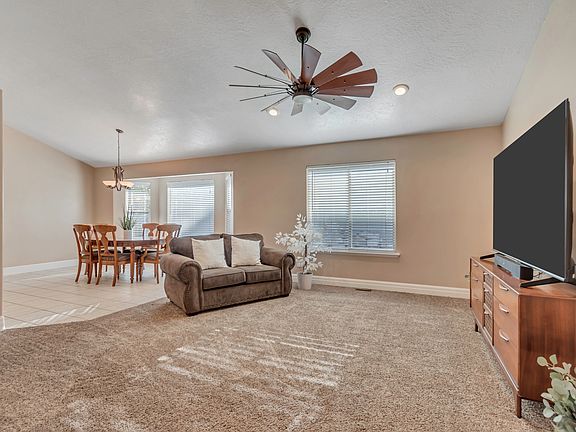 Brand new roof! HVAC only 2 yrs old! Welcome home to this inviting 4-bedroom, 3-bath ranch-style rambler nestled in the highly sought-after Jacobs Ranch neighborhood of Saratoga Springs. Step inside to a bright, open floor plan that flows seamlessly from the living area to a spacious kitchen and dining space-ideal for everyday living or entertaining guests. The huge basement family room is a true highlight, offering a versatile space for movie nights, game days, or gatherings, with plenty of room left to finish and expand as your needs grow. Outside, enjoy a welcoming neighborhood known for its parks, lake trails, mountain trails and community feel-all just minutes from schools, shopping, and Utah Lake. Square footage figures are provided as a courtesy estimate only and were obtained from county records . Buyer is advised to obtain an independent measurement.