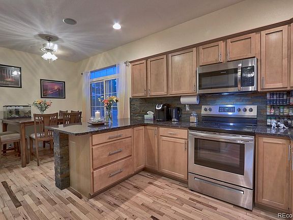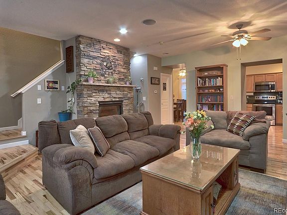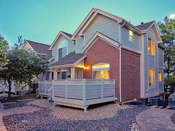 This Stunning Townhouse Style Condo is a Must See! 3 bedroom/3 bath with attached 2-car garage! Light and bright with great floor-plan! This home has updated high-end finishes throughout including: Slab granite countertops in kitchen and all bathrooms, Hickory wood flooring throughout the home including bedrooms, Maple cabinetry, Slate backsplash in kitchen, tile flooring in bathrooms, newer stainless steel appliances, surround sound speakers and more! Enjoy the cozy gas fireplace with beautiful stack stone wall! Outdoor living space includes private front deck and balcony off-kitchen. Spacious master suite, sunny laundry room, half bath on main level & sunny end unit are some of the home's fine features. Convenient location near I-225, shopping and dining! Well kept community has newer landscaping, community pool and tennis courts. Enjoy chilling out with Central A/C, newer A/C condenser! Convenient visitor parking near garage.