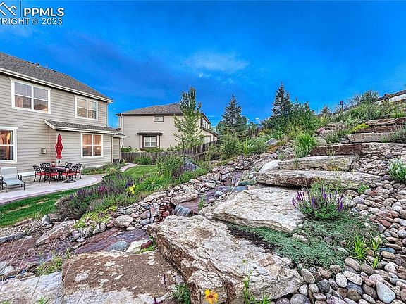 AMAZING DEAL FOR THIS LOCATION! Located in the golf course community of Red Hawk Ridge, this two-story home is located on Golf Course Open Space on more than 1/4-acre lot in a cul-de-sac! Red Hawk is one of the lowest tax districts in Castle Rock! Enjoy sunny afternoons and cozy evenings on the true wrap-around porch that is 41 x 27 feet! The formal living room has a welcoming window seat and the dining room has French doors that lead to the wrap-around porch. The gourmet granite eat-in kitchen with all appliances opens up to a large family room with surround sound and fireplace for those chilly days. The main floor bedroom with adjacent 3/4-bath is super convenient for those needing main floor living with no stairs. The primary bedroom is a true suite with large sitting area, separate bedroom, two closets and an en-suite 5-piece bath with separate tub and shower room. Another upper bedroom includes an en-suite full bath which is perfect for guests. Two more bedrooms, 4-piece bath, and laundry room complete the upper level with space for everyone. Step out onto the fully-fenced 1/4-acre yard on golf course open space to enjoy the amazing 10-point waterfall feature as you sit on your patio and enjoy no homes behind you! Check out the photos! The oversized 3-car tandem garage has room for both cars and toys!