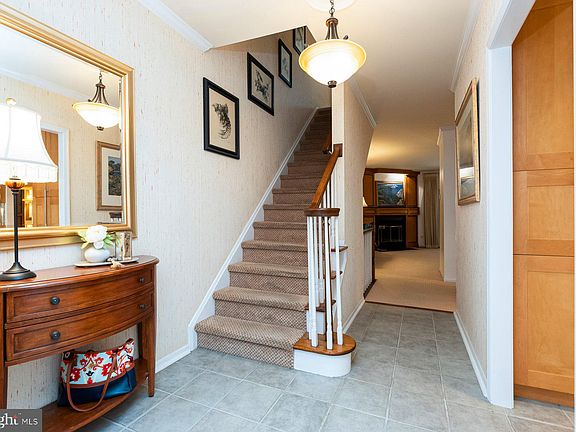 Welcome to Chapel Hill, where standout curb appeal and thoughtful design meet everyday comfort. This 3-bedroom, 3.5-bath townhome is filled with custom upgrades and premium finishes starting with the heart of the home: the kitchen. Designed with true craftsmanship, the kitchen features solid maple Siematic cabinetry, soft-close drawers, SubZero fridge, JennAir downdraft range, and a Canadian maple butcher block peninsula. A built-in wet bar adds even more function, and Hunter Douglas shades complete the space with polished style. Flowing off the kitchen is a comfortable main living area with a wood-burning fireplace and access to a spacious Trex deck (2006) that’s perfect for relaxing, entertaining, or catching local fireworks. The deck includes a seasonal awning for both summer and winter, plus optional side panels for added coverage. The fenced rear yard features brick paver hardscaping, lush landscaping, and solar lighting for beautiful ambiance day and night. Front and back Utilitec lights are on timers for added convenience! Throughout the first and second floors, Karastan wool carpeting adds comfort and durability. Upstairs, thoughtful design details shine including coffered ceilings, custom built-ins, and a stunning hall bath finished with onyx and a heated towel rack. The fully finished lower level offers a cherry coffered-ceiling rec space, a cherry wood and slate hearth wood-burning fireplace, and a walkout to the private brick paver patio and fenced yard. There’s also a large storage room with built-in Stanley storage that conveys. Additional upgrades include the recent roof (2014), Andersen windows, Pella patio and deck doors, generator, Hunter Douglas shades, and a newer heat pump (2015 with warranty coverage through 2027). Community amenities like a tot lot and shared green space round out the lifestyle this home delivers. This is a rare opportunity to own a meticulously upgraded townhome in one of Lutherville-Timonium’s most desirable neighborhoods. Don't miss it!