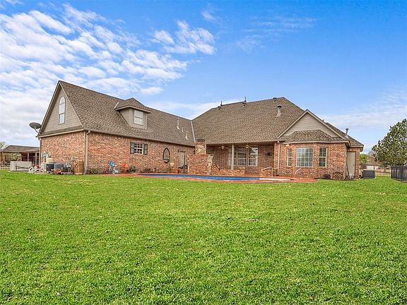 OPEN HOUSE SUNDAY, MARCH 24TH, 2:00PM-4:00PM. Welcome to Cedar Ridge Farms! Desirable Deer Creek community offers one acre lots with custom homes, stocked ponds and beautiful landscaped entrance. This acreage home is situated on mature landscaped lot, with extended drive (plenty of parking for family and friends). One owner custom home, offers large living/family area and includes views of swimming pool and outdoor wood burning fireplace. Family room also offers an elegant cast stone fireplace flaked with unique shelving and a beautiful coffered ceiling. Study/office space looks out large front window with lots of natural light! Kitchen includes island, breakfast bar and walk-in pantry. Additional square footage in home includes a flex room, study/office and bonus room. Large primary suite has plenty of room for a reading/sitting area. The wood plank cathedral ceiling brings a rustic feel to the room. Primary bath includes separate vanities, large walk-in shower and step-up tub. East backyard makes for enjoyable days/evenings by the saltwater sports pool. Property has 3 HVAC units, 2 hot water tanks and storm shelter. Deer Creek schools are all in close proximity to neighborhood.