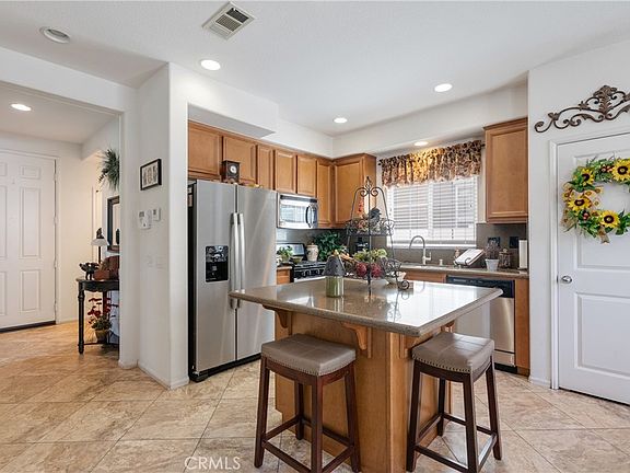 Welcome to Yorke Road, and thank you for taking the time to visit this turnkey 3-bedroom, 2.5-bathroom home located in a well-managed and maintained private community. This is a great opportunity for a first-time buyer or a family looking to downsize into a move-in ready home. The main floor features a living room or formal dining area that opens to a separate dining space and a comfortable family room. The kitchen includes an island, dining area, fireplace, and custom granite backsplash, making it perfect for family gatherings. All three bedrooms are located on the second floor, along with the laundry room for added convenience. The spacious main bedroom includes a bathroom with double sinks, a large shower, soaking tub, and walk-in closet, while the two remaining bedrooms share a full bathroom. The newly finished concrete patio offers a private setting ideal for relaxing and entertaining. This home is conveniently located near schools, a community park, and shopping centers, with easy access to the 60 and 215 Freeways for commutes to San Diego, Los Angeles, or Palm Springs!