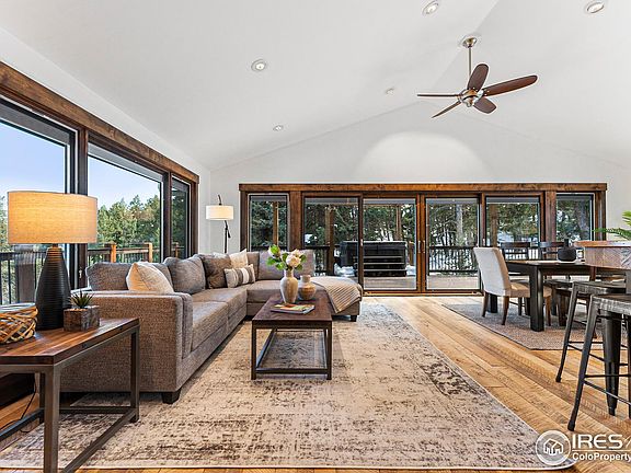Escape to your private sanctuary nestled at the end of a quiet cul-de-sac on over an acre of usable land. This home boasts breathtaking views and total privacy on the best lot in the neighborhood. Inside, you'll find high-end finishes and rustic charm including rough-hewn wood floors, Pella Windows and doors, Jen Air appliances, alder doors, and vaulted ceilings. At the heart of the home is an updated, open-concept kitchen featuring premium appliances, a massive island with induction cooktop, and hickory cabinets. Head downstairs to the cozy family room where you can relax by the wood-burning fireplace with stacked stone surround. With four bedrooms, two featuring en-suite baths, and a remodeled basement offering two flex spaces, a massive pantry, and a storage room, there's ample space for all. Outside, entertain or unwind on the expansive deck complete with a hot tub and pergola with retractable shades. Enjoy mountain living in a wonderful community while being just 25 minutes from downtown Denver, and quick access to Littleton, Conifer, and downtown Evergreen. Plus, with recent updates including a new roof, hot water heater, boiler, bathrooms, paint, carpet, and basement remodel, this home is truly move-in ready. Bring your animals - A-2 zoning allows for horses, goats, chickens, and more! Domestic well allows for outdoor use, irrigation and watering animals and livestock.Come and make this dream retreat your own!