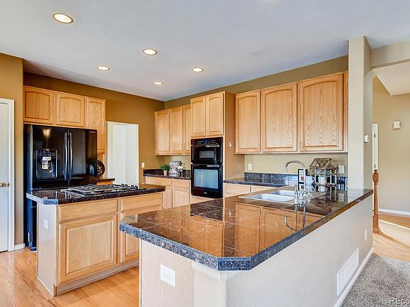 Tons of space for the price in sought after Canterberry Crossing neighborhood! 5 Bedroom,4 Bath,finished basement and 3 car garage offers space for everyone.Thoughtfully designed kitchen with center island, gas cooktop,eat-in area,pantry and plenty of storage.Open concept family room.Main level office with french doors.Upstairs spacious Master Retreat features ensuite 5-piece bathroom,walk in closet,vaulted ceilings,and private deck for relaxing mornings! Three additional bedrooms upstairs with full bathroom.Large laundry with storage and the washer/dryer stay.Formal Living and Formal Dining Room is perfect for entertaining.Gorgeous Granite countertops in Kitchen and Baths.Finished basement has open recreation room,3/4 bath,workout area and additional room that could be used as a bedroom or craft room.SOUTH FACING FRONT, let the sun shovel. Fully fenced backyard and a Trex type deck.You'll be hard pressed to find this much home for under $500k in Parker!