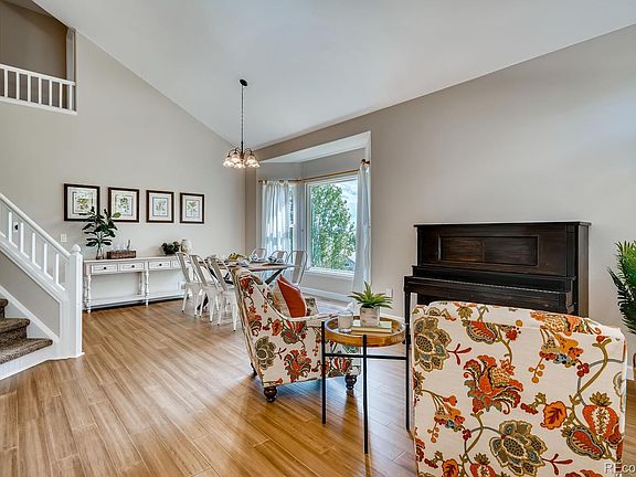 The stylish NEW UPDATES and absolutely stunning panoramic MOUNTAIN VIEWS this gem offers will make you FALL in LOVE! The home is nicely situated on a Unincorporated Arapahoe County cul-de-sac, backs to open space, and has an alluring PROFESSIONALLY landscaped backyard that is overlooked by an enclosed and heated sun room and a deck constructed of steel, metal railing and desirable trex decking. The inviting living room offers vaulted ceilings that will please you. Plenty of space for holiday gathering with a dining room and eat in kitchen. The upstairs master bedroom offers vaulted ceilings and its own 5 piece private bath with elegant updates, dual sinks, a soaking tub, spacious shower plus a huge walk-in closet. Three additional bedrooms upstairs with plenty of space for study, sleep or storage. Updates include beautiful bamboo wood flooring, new paint, new carpet, new furnace, new A/C, new roof, new Anderson windows, new Samsung shiny stainless-steel appliance package, charming granite countertops, stylish back splash, bronze light fixtures and hardware. Perfect for anyone, this home is ideally positioned to enjoy soaking up the sun, gardening, breathtaking sunsets, lounging by the fire pit or just relaxing on the couch next to the cozy fireplace. Conveniently located minutes from shopping, Southlands mall, dining, E-470 and Denver International Airport. Highly desired fantastic community with parks, trails galore and extensive recreational opportunities. Schedule your showing today! **CLICK ON VIDEO REAL TO VIRTUALLY WALK-THROUGH THE HOME VIA THE 3D MATTERPORT TOUR**