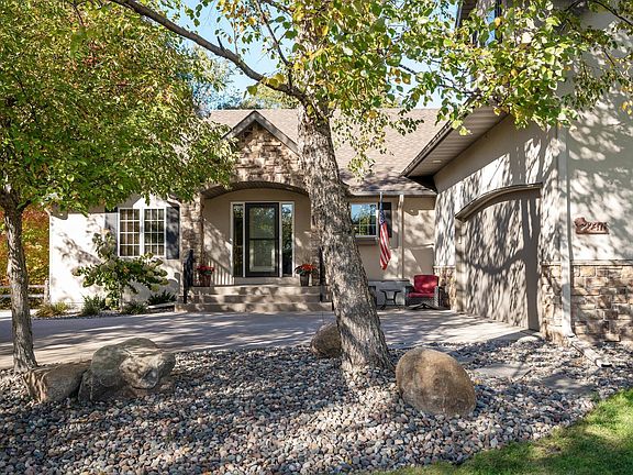 Come home to a beautiful walkout rambler in the sought-after Ridges of Rice Lake. A country setting with mature trees and larger lots plus a fun neighborhood environment and an easy drive to Elk River. Great amenities including fiber-optic internet, walking paths, community gazebo, unmanned guard house, HOA includes shared well water & septic and a hockey rink right across the street. The home was built by Christian Builders with custom finishes and has been well-maintained and improved including a new roof in 2020, new furnace in 2021, new washer & dryer in 2023, a new water heater in 2024 and new landscaping in 2022. There are 3 Bedrooms on the main floor, 1 large Bedroom / Office above the garage, and 1 Bedroom in the basement. The walkout basement is finished perfectly for a quiet movie night or having friends over to watch the game, plus a workout room. You'll love the oversized garage with all the extra storage space. The yard is well-maintained and landscaped with a bonus parking pad, boulder wall and paver steps coming down to the back patio, in-ground sprinklers and dog fence.
