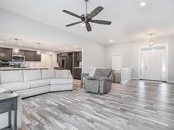 Welcome to this stunning 4-bedroom, 3-bath ranch offering the perfect blend of style and functionality. Built in 2022, this home features an inviting open-concept floor plan with a bright and spacious living area. The gorgeous kitchen is a chef’s dream, complete with a large island, beautiful cabinetry, and a huge walk-in pantry. The master suite has a dual vanity private bath and walk in closet. The finished lower level expands your living space with a cozy family room, wet bar, full bath, and a 4th bedroom—ideal for guests or entertaining. Step outside to enjoy the huge fenced backyard and brand-new deck, perfect for gatherings, kids, or pets. Appliances will stay with the home.