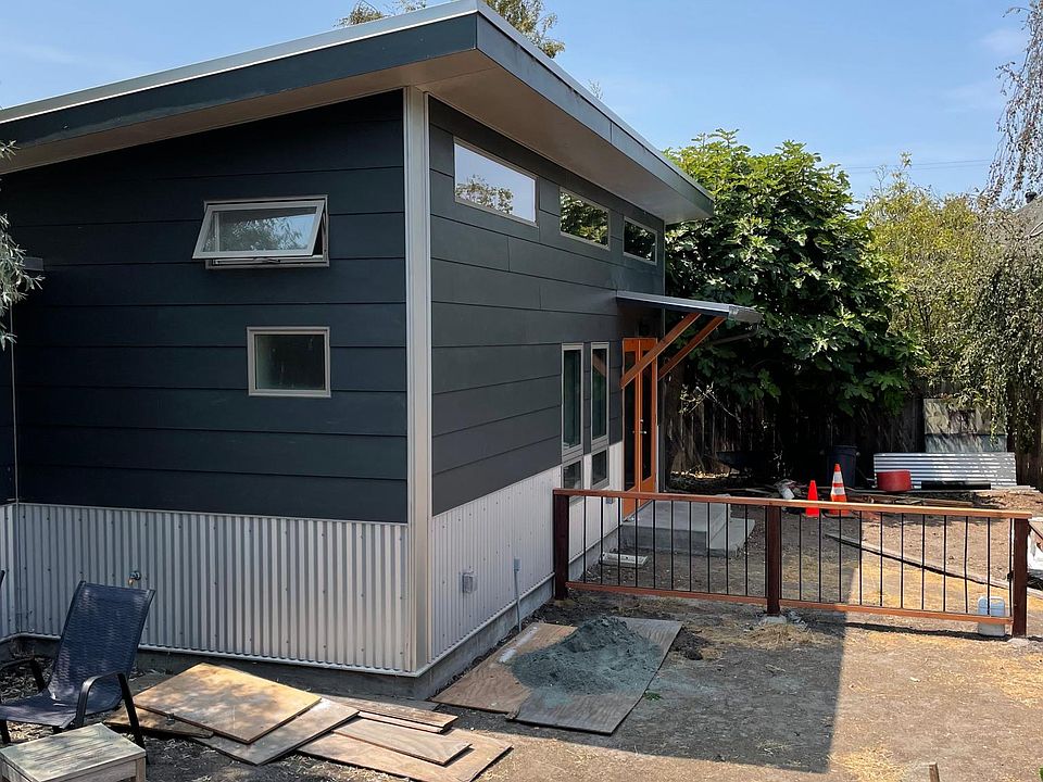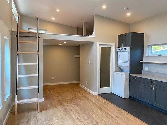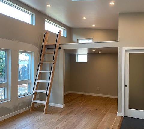 Use your imagination - just finishing final touches on a newly built 420 sq ft ADU in back area of large West Berkeley property. (Owners live in front house). Lots of windows = lots of sunlight, high ceilings, hardwood and tile floors, heater/AC. Separate area, with a closet, that can be used as a bedroom or office space. Loft area/sleeping space above with large storage space. Beautifully tiled bathroom and full kitchen with all new appliances and lots of cabinet space. In unit washer and dryer. Private entrance and private yard with patio. Street parking available. The ADU is located on a quiet West Berkeley dead end street, close to AC transit, 15 minute walk to North Berkeley BART, 1 mile from Cal campus, easy freeway access (hwy 80). Close to Berkeley Bowl, 4th St shops & restaurants, Aquatic Park, and lots of cafes and dining spots. $2,150/month rent includes water, trash and wifi Available now. Required to move in: $2,150 (first month's rent) and $800 deposit. Must supply credit references. Email with information about yourself , any questions and to set up an appointment for viewing.