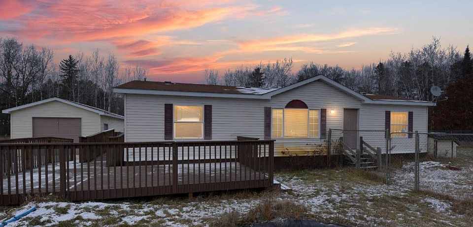 3 bed 2 bath 2 stall garage manufactured home on a dead end road. Beautiful lot, newer updates including handicapped master bathroom, fenced yard, large deck, needs a little TLC but a good starter home.